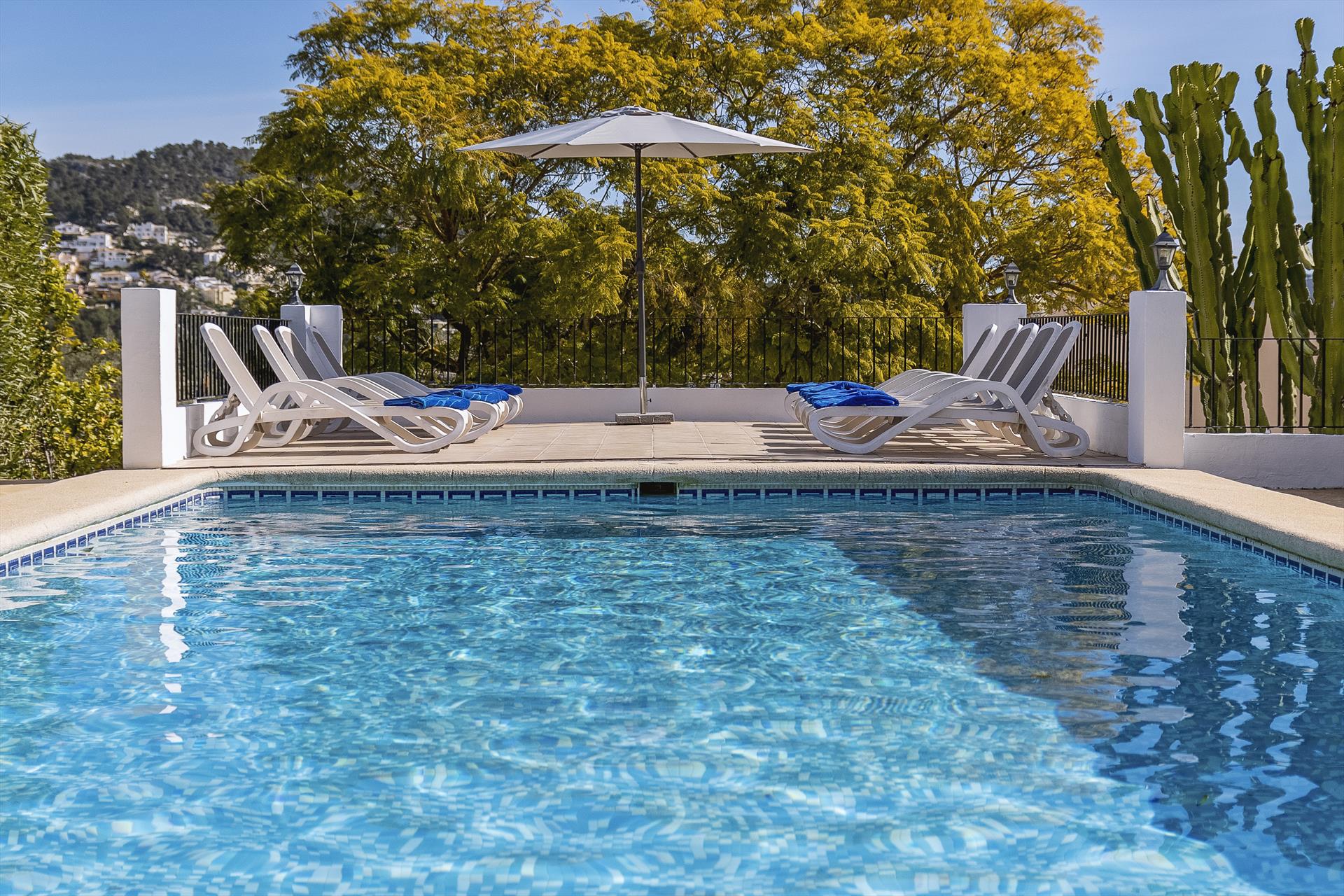 La villa dispose de 11 chambres et de 8 salles de bains, réparties entre l'hébergement principal et une unité séparée. L'hébergement offre intimité, un magnifique jardin avec pelouse, gravier et arbres, une superbe piscine, ainsi que de belles vues sur la vallée. Son confort et la proximité de la plage, des activités sportives, des installations de divertissement, des sites touristiques et de la culture en font une villa idéale pour passer vos vacances en Espagne avec votre famille ou vos amis, et même vos animaux de compagnie.